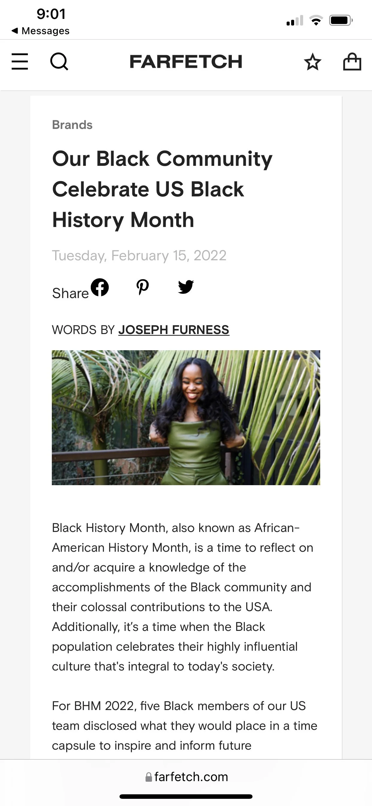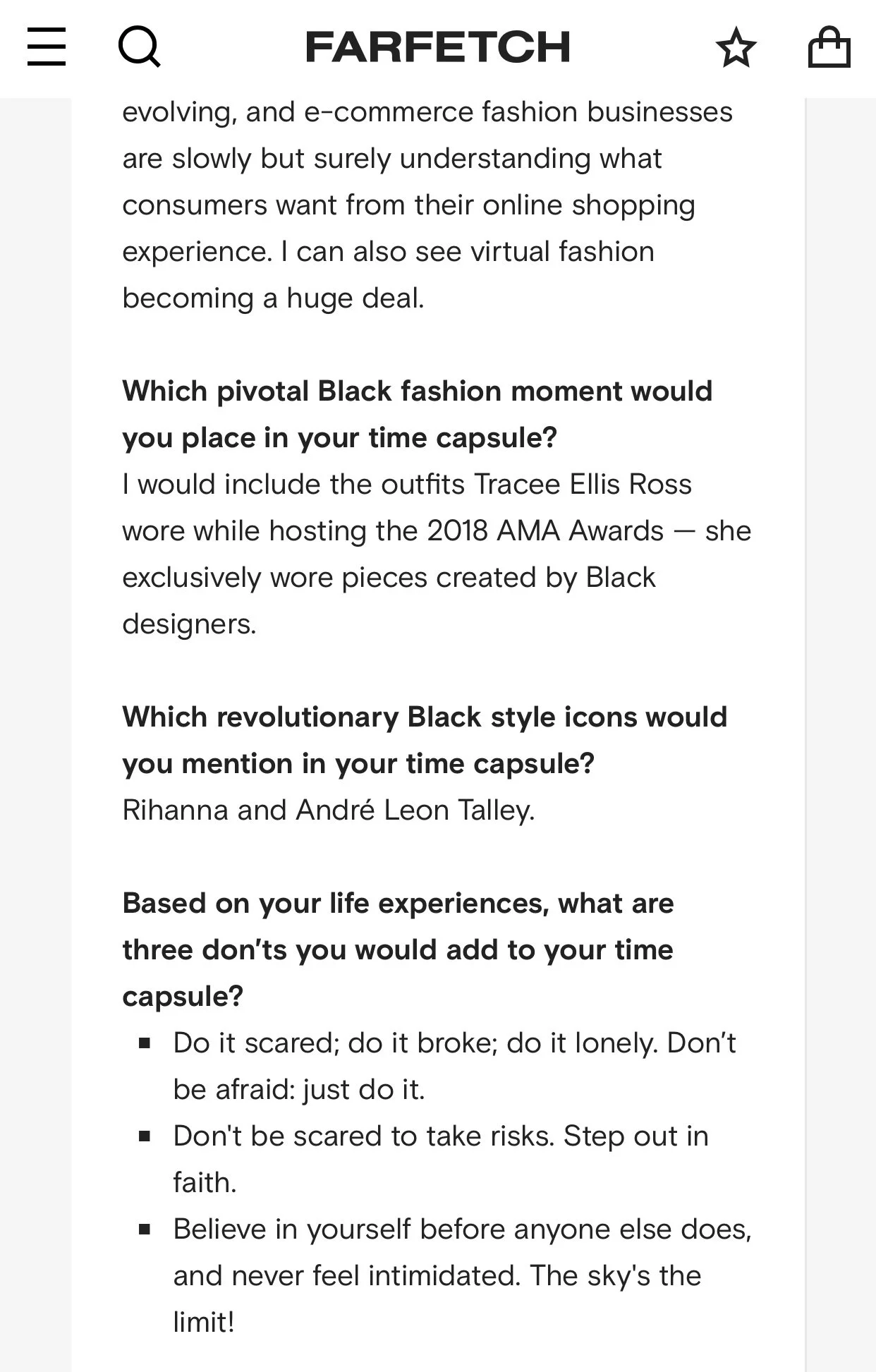 I am very honored to be featured in Farfetch’s Black History article for Black Creatives. As many of you know Farfetch is a British-Portuguese online luxury fashion platform. Farfetch headquarters are in London and own by CEO, Jose Neves. FARFETCH exists for the love of fashion. We believe in empowering individuality.