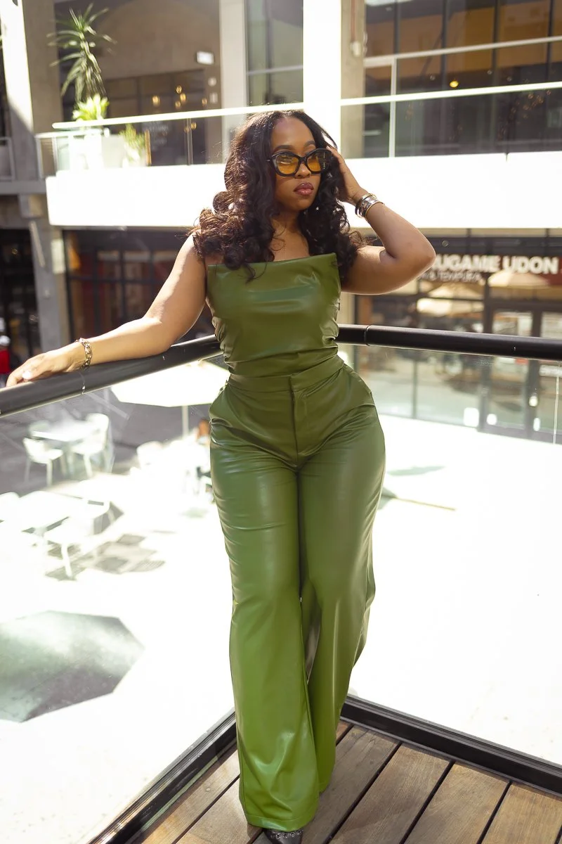 For this look I decided to make a statement and wear the color green. Green symbolizes growth, renewal and new beginnings. This peaceful color also came in faux leather which made it even more durable. I was able to match my leather straight leg pants with a halter green body suit. This look came out to be so clean cut, sexy yet professional tagging along my all black blazer. When finalizing my accessories I paired my stylish cat eyewear frames.