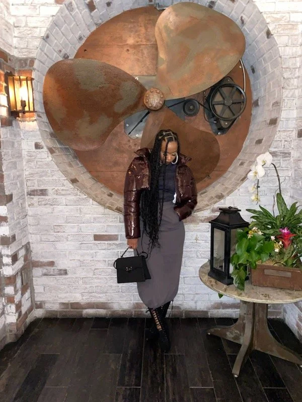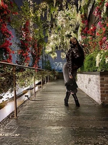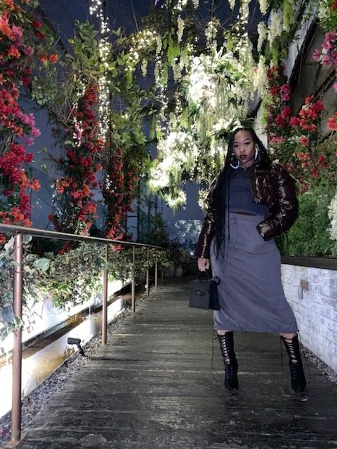 Your typical winter nights comes with snow or icicles but finding out about this restaurant called CATCH in LA was definitely a different winter view for me. The floral arrangements and lighting was absolutely gorgeous. For this cute dinner night, I decided to wear my burgundy patent leather cropped puffer jacket. The setting of this restaurant was dimmed so wearing dark shades were perfect. I completed this look with my grey utility cargo skirt, lace up booties and black bag.