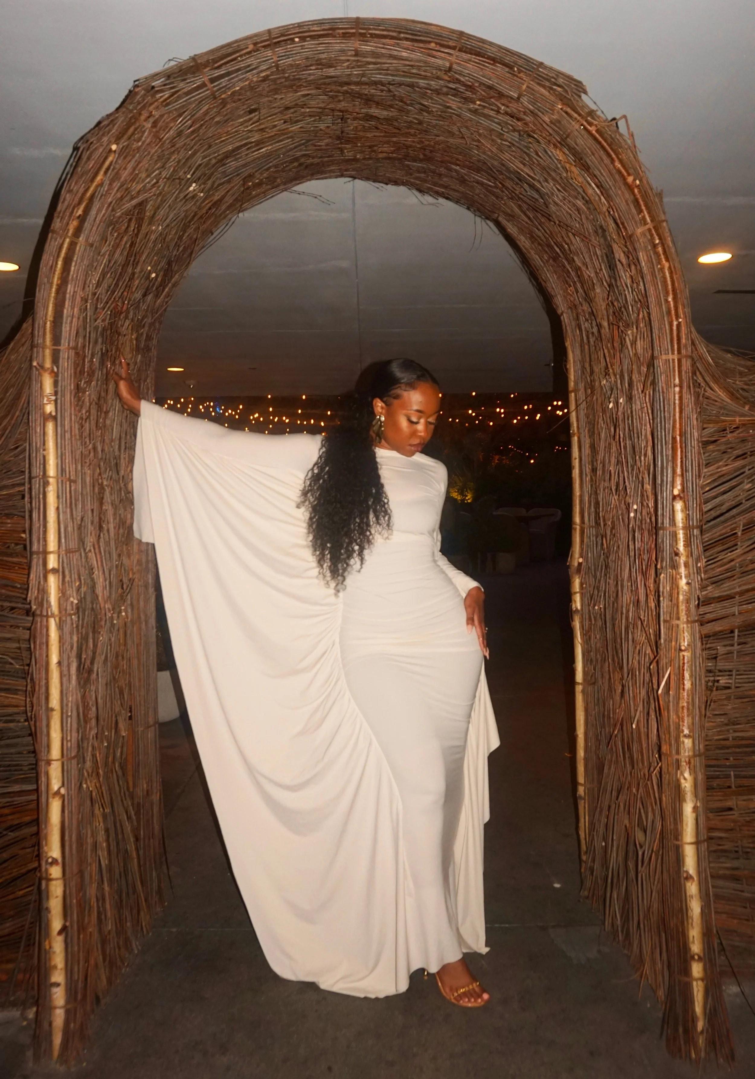 My third look was this flowy yet very bodycon dress. This cream fitting dress was also long sleeve and revealed no skin, causing it to be conservative yet sexy. This look was giving private, low-key and modest.