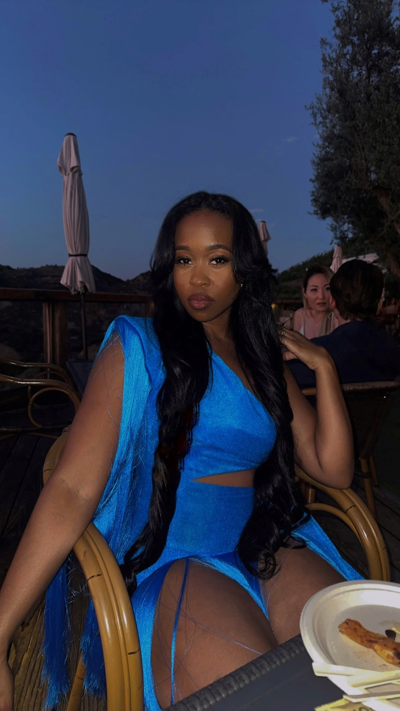 My second look was this beautiful and effortless one shoulder cut out blue fringe dress. The material was very comfortable, allowing me to freely move around. The movement when walking gave so much volume. This look was definitely giving “feeling blue” The use of the term blue to mean “sad” from the late 1300s.
