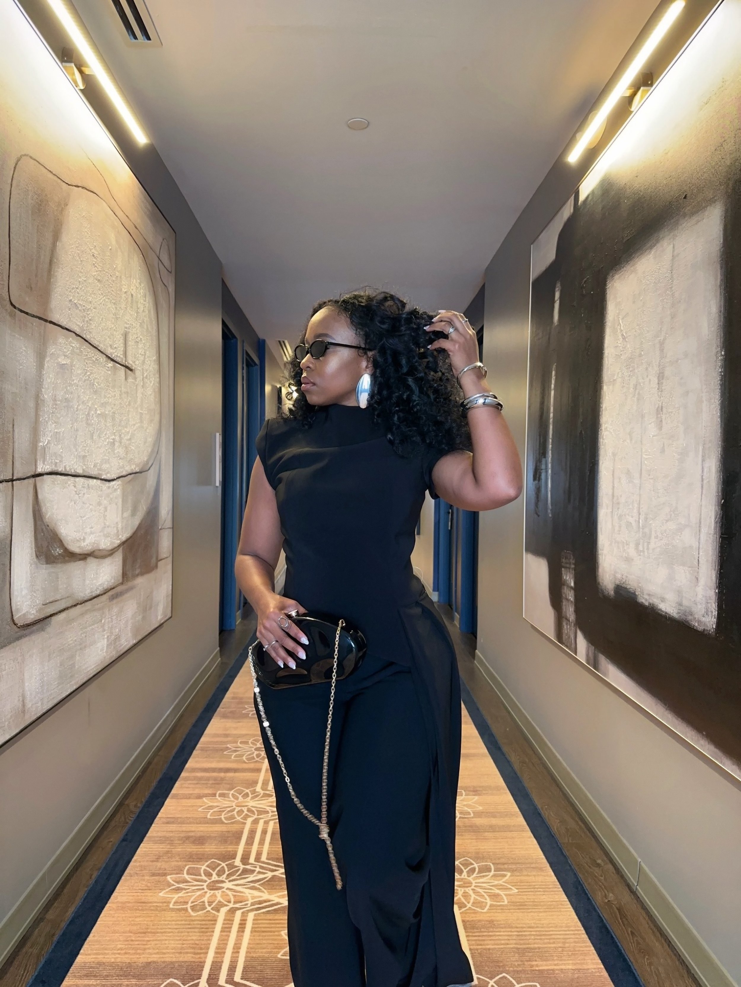 Originally, Look Two was my intended choice. Its impeccable tailoring and structured silhouette spoke volumes, effortlessly balancing modern minimalism with timeless chic. The low-waist detailing drape added an understated allure that captured my aesthetic perfectly. However, due to a slight tailoring issue at the back of my pants, I reserved and wore this ensemble for an elegant dinner in the city later that evening instead.