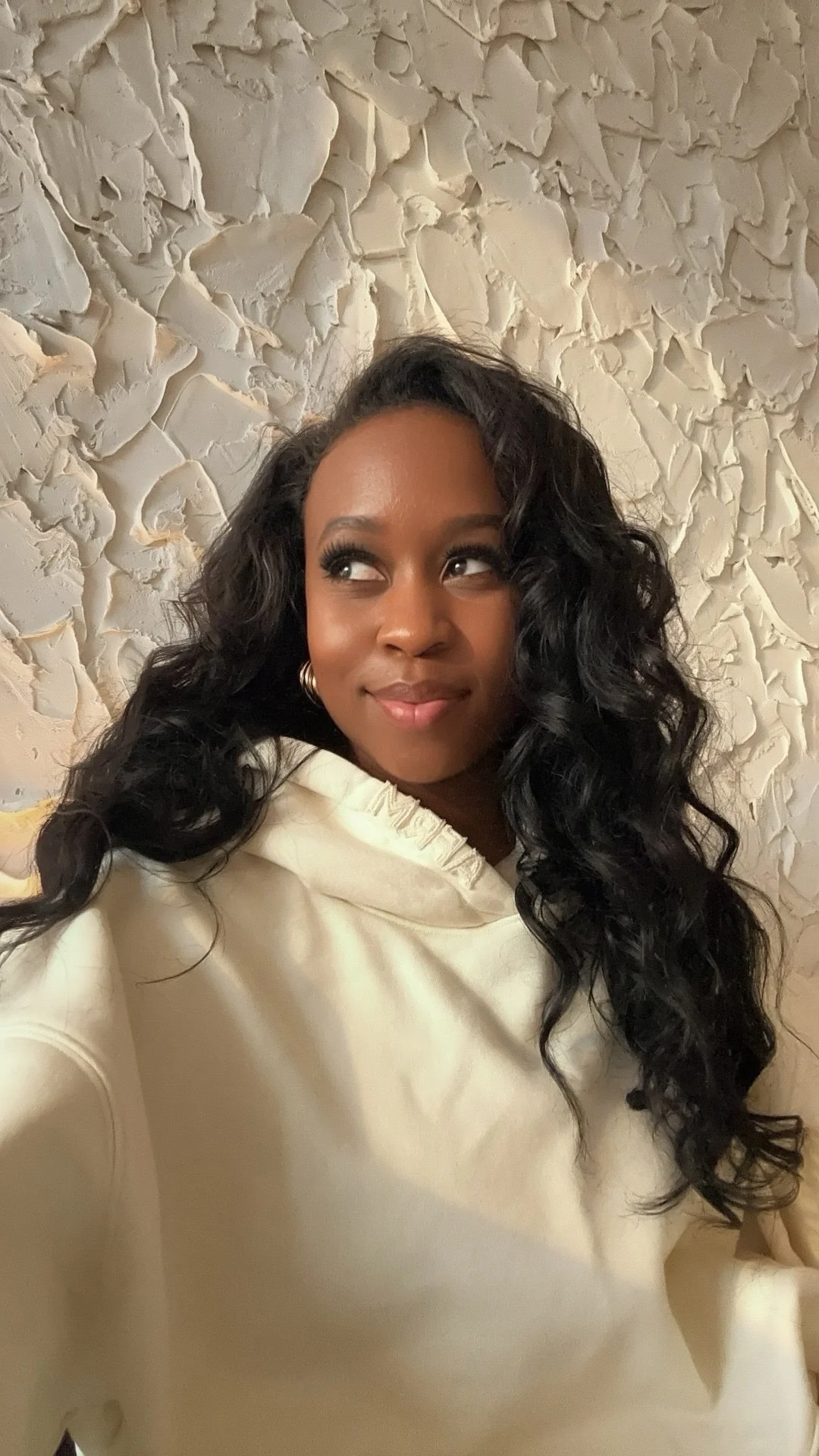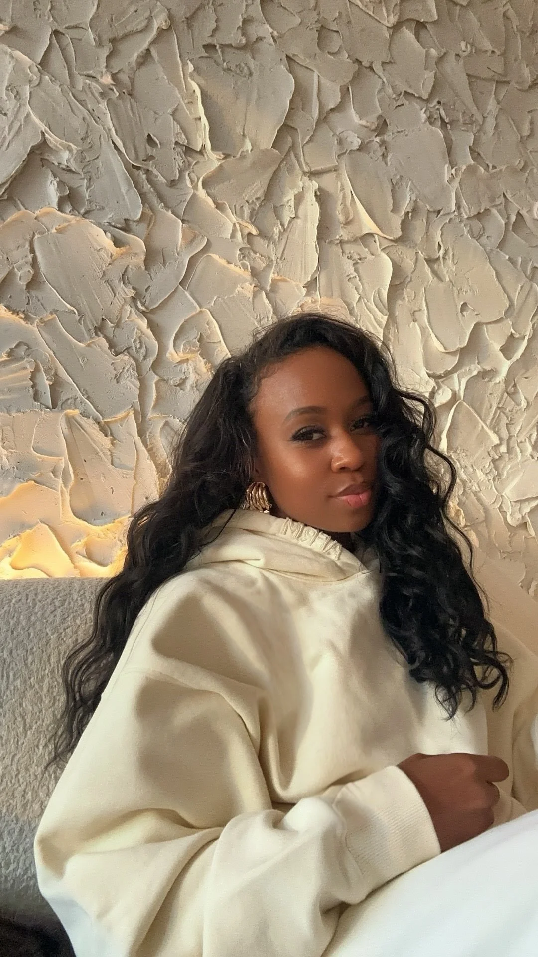 The base of the outfit starts with relaxed cream trousers paired with a matching hoodie. The monochromatic palette keeps the look elevated while the silhouette stays effortless and comfortable. To add structure, I layered a textured cream coat over the hoodie. The coat instantly sharpens the casual pieces underneath and creates that contrast between relaxed and refined that I love when styling transitional outfits.